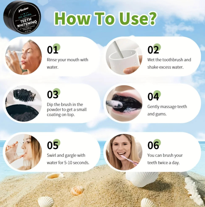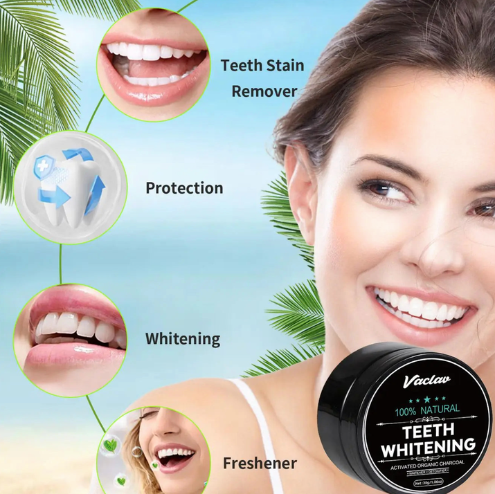 אבקת הלבנת שיניים מופעלת בפחם לטיפוח טבעי של הפה
